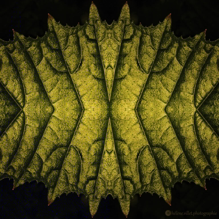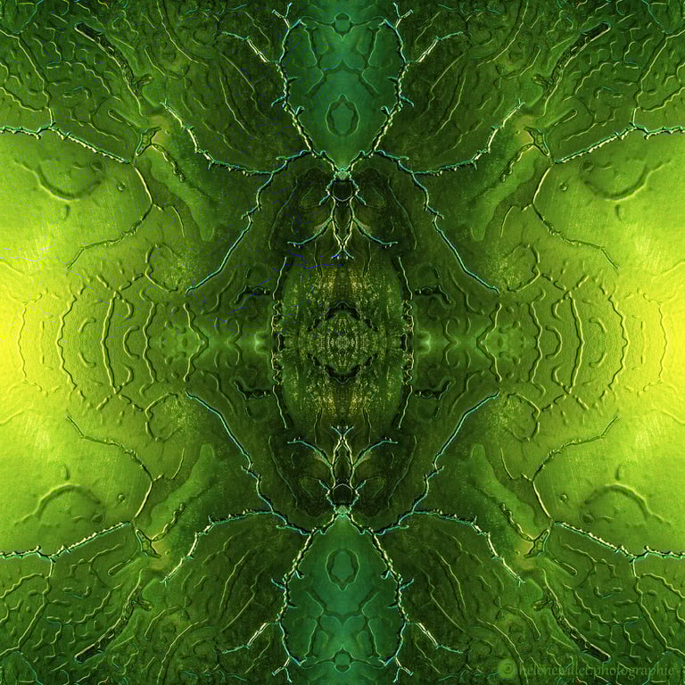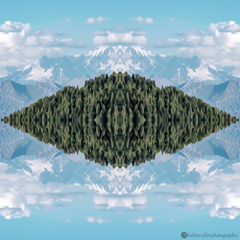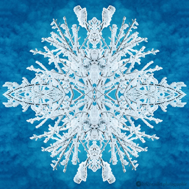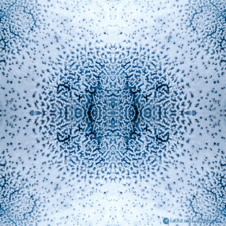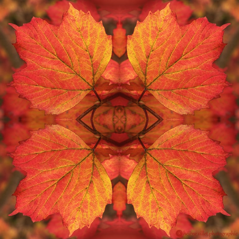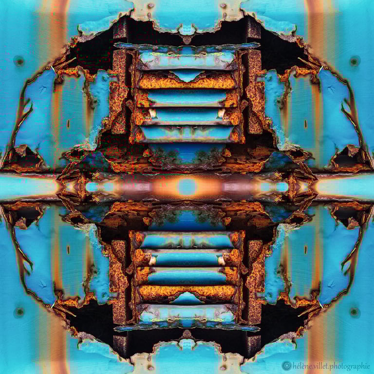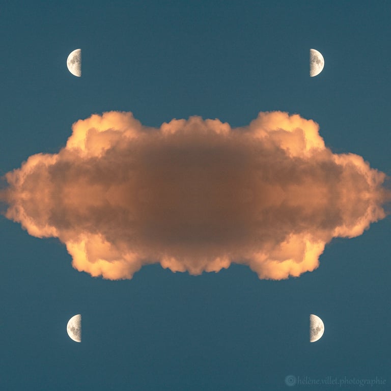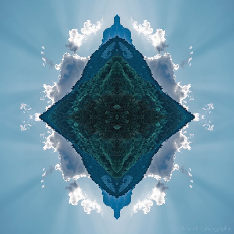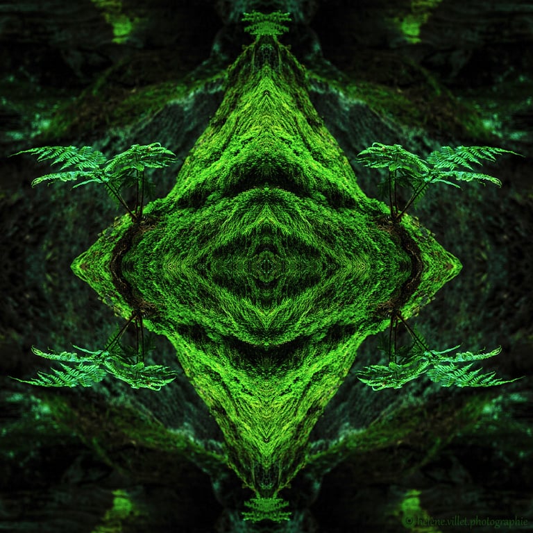 J’ai toujours aimé regarder la lumière du soleil au travers de ce tube en carton que ma main tournait pour que les petits fragments de verre coloré se réarrangent sans cesse en un jeu magique de symétries changeantes. Et un beau matin, j’ai joué à faire la même chose avec certaines de mes photographies carrées, et les ai disposées en miroir comme dans mon kaléidoscope d’enfant. La joie a été presque la même : voir se former de nouvelles figures parfois monstrueuses, parfois drôles ; y chercher des visages, des références familières.